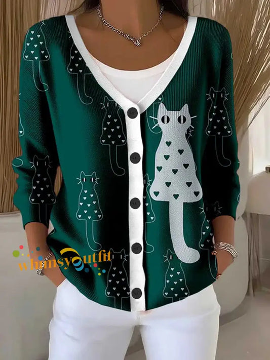 Women's Striped Pattern Breast Cancer Awareness Print Buttoned V-neck Cardigan Sweater