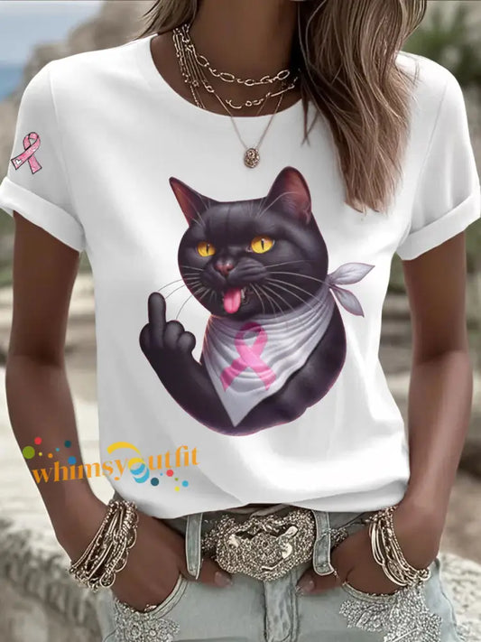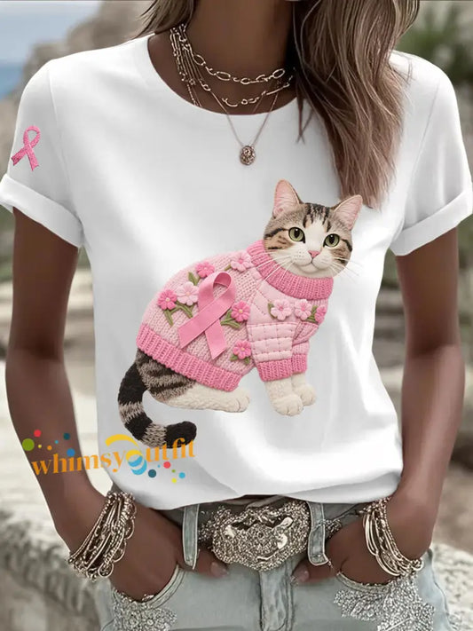 Women's Breast Cancer Awareness Dog Paw Imitation Sweater Short-sleeved T-shirt