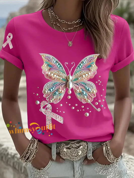 Women's Pink Breast Cancer Awareness Butterfly T-Shirt