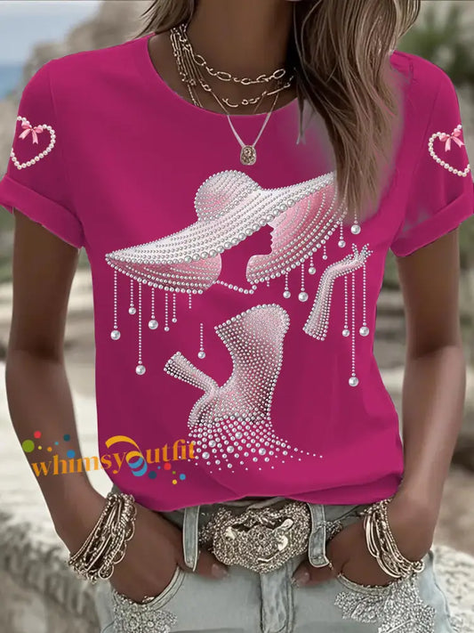 • Women’s Pink Ribbon Print Casual T shirt Pink / S