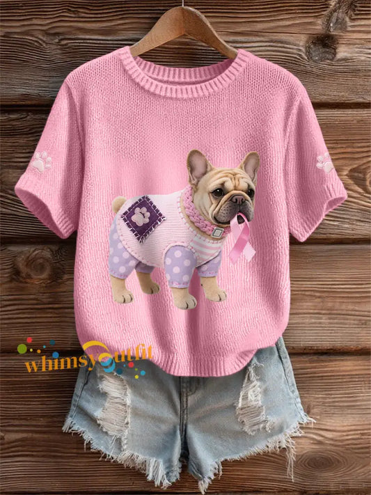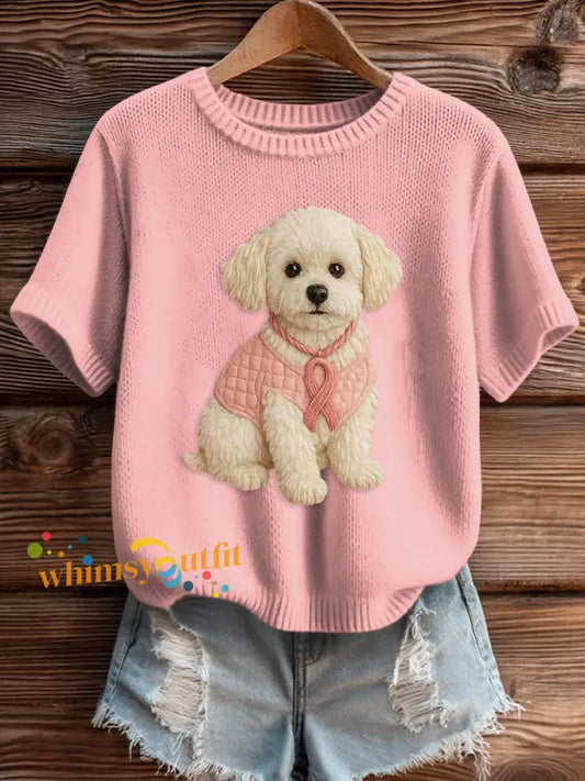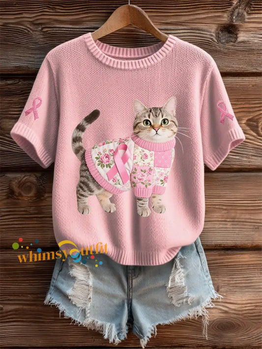 Women's Breast Cancer Awareness Cute Animal Regular Sweater