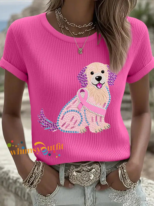 Women's Pink Dog Pink Ribbon Breast Cancer Awareness Support Tee