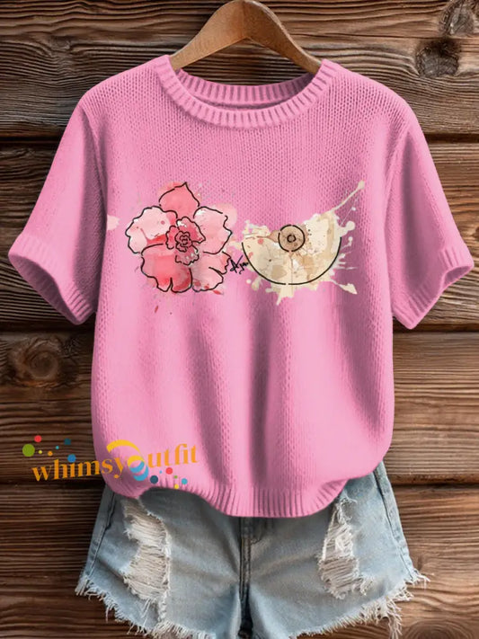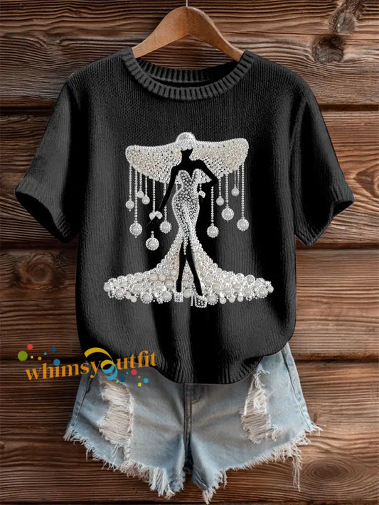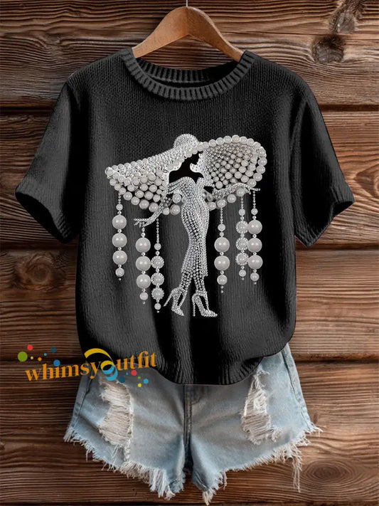 Women's Breast Cancer Pearl Art Cozy Knit Top