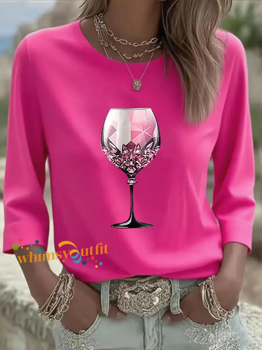 Women's Pink Goblet Print Casual T-shirt