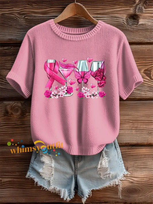 Women's Breast Cancer Pink Printed Casual Top