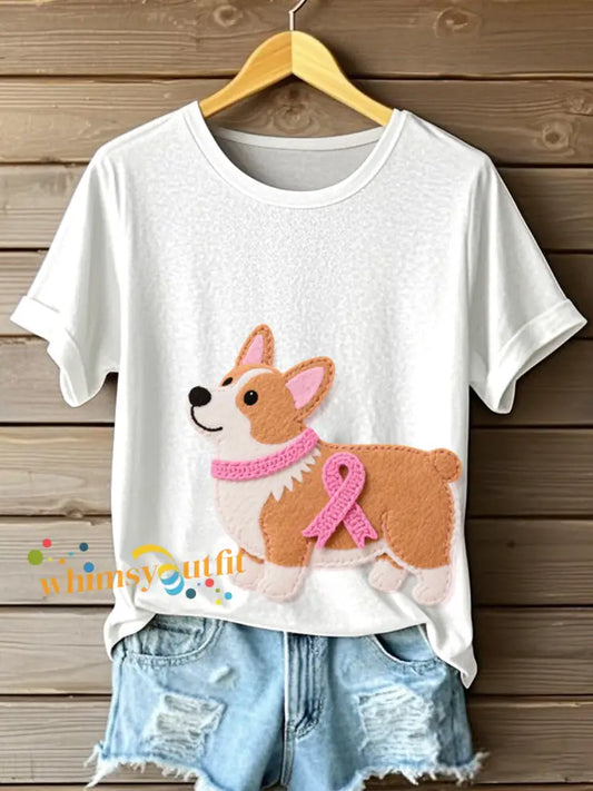 Women's Cute Corgi Pattern Felt Art T-Shirt