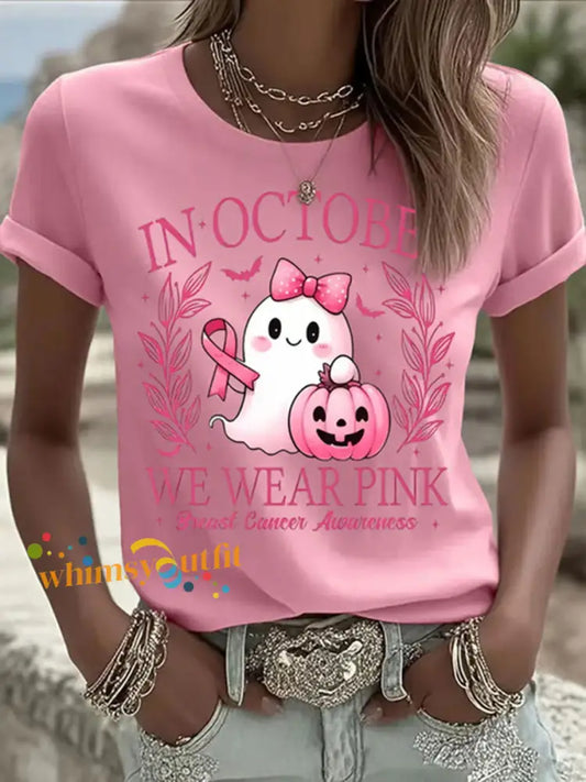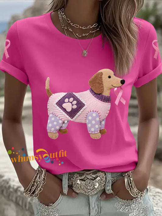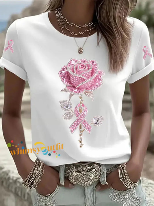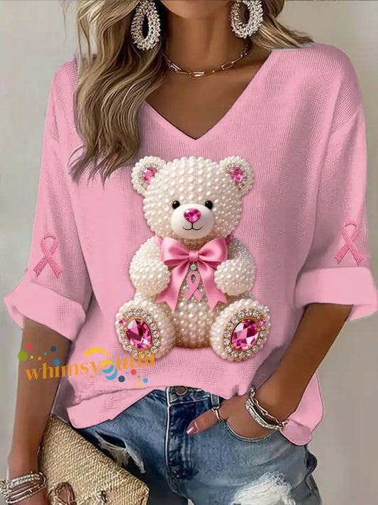 Retro Breast Cancer Pearl Diamond Multicolor Hummingbird Abstract Print Casual Cotton Waffle Long Sleeve T-Shirt
