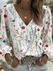 Dames bloem V-hals katoen en linnen lang T-shirt