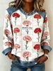 Dames Moederdag Anjer Bloemenprint Denim Patchwork Top