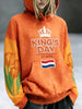 Dames Nederlandse Koningsdag Bloemen Patchwork Print Mode Sweatshirt met capuchon