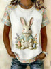 Dames Retro Schattige Bunny Paaskoneel T-shirt met korte mouwen
