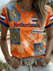 Dames T-shirt met patchwork en kunstprint ter herinnering aan Koningsdag in Nederland