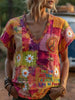 Dames Vintage Hippie Peace Daisy Floral Patchwork Print Linnen T-shirt