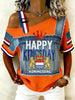 Dames vintage off-shoulder top voor de Nederlandse Koningsdag-viering