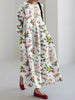 Damesetende schattige konijntjes en bloemen bedrukt katoenen linnen jurk met ronde-hals maxi