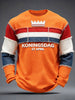 Heren Nederlandse Koningsdag 3D Patchwork Print Casual T-shirt met lange mouwen
