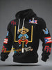 Men's Bunny Football Music Lover Printed Checkered Cotton Hoodie