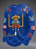 Men's Bunny Football Music Lover Printed Waffle Long Sleeve Top