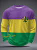 Men's Mardi Gras Fleur De Lis Colorblock Print Casual Waffle Long Sleeve T-Shirt