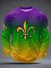 Men's Mardi Gras Fleur De Lis Print Casual Waffle Long Sleeve T-Shirt