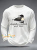 Men's Stupid Canadian Wolf Bird Waffle Print Casual T-Shirt