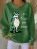 Women's In Frogs We Trust Polish Frog Print Ribbed Round-Neck Sweatshirt