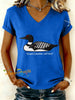Women's Stupid Canadian Wolf Bird Embroidered V-Neck T-Shirt