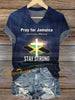 Women's V-Neck Retro Pray For Jamaica Stay Strong Psalm 107:29 "He Calmed The Storm To A Whisper And Stilled The Waves." Print T-Shirt