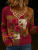 Women's Vintage Art Floral Print Casual Long Sleeve Top
